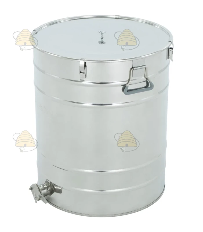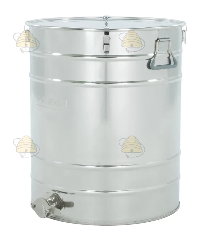 Dieses Fass besteht aus lebensmittelechtem, hochwertigem Edelstahl und eignet sich für 100 Liter / 140 Kilo Honig. Dank des 6/4" Edelstahl-Auslaufhahns / Quetschhahn an der Unterseite dient es direkt auch als Abfüllbehälter.