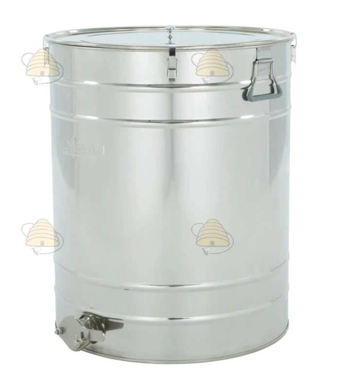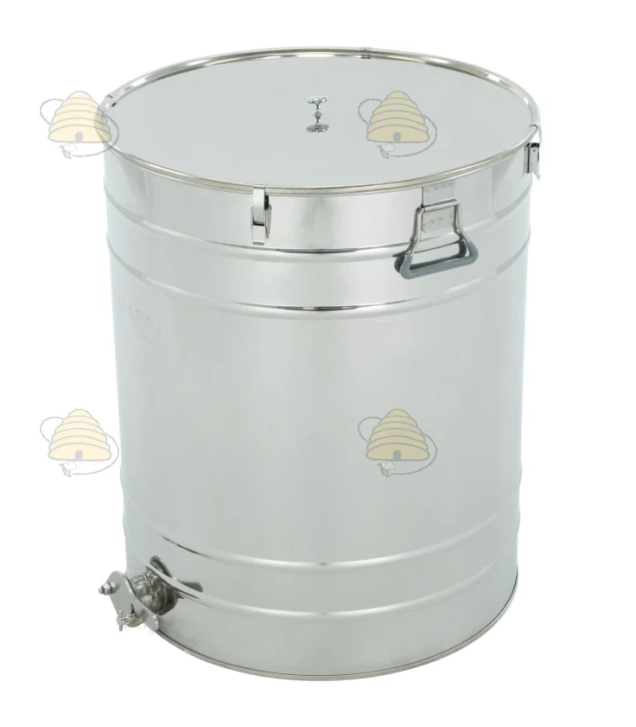 Dieses Fass besteht aus lebensmittelechtem, hochwertigem Edelstahl und eignet sich für 200 Liter / 280 Kilo Honig. Dank des 2" Edelstahl-Auslaufhahns / Quetschhahn an der Unterseite dient es direkt auch als Abfüllbehälter.