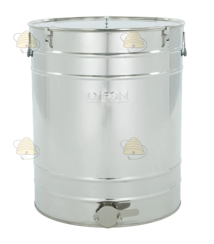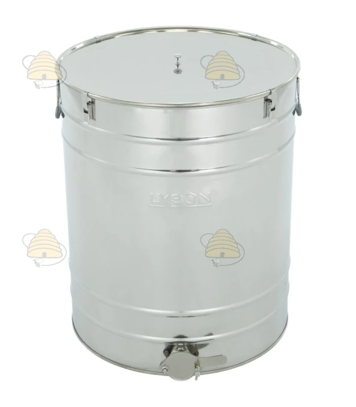 Darüber hinaus ist das Fass mit ergonomischen Griffen für optimalen Nutzungskomfort, Sicherheitsklemmen, die verhindern, dass der Deckel herunterfällt, sowie einem Silikonring im Deckelrand ausgestattet, der den Honig vor Feuchtigkeitsaufnahme und Verschmutzung von außen schützt.