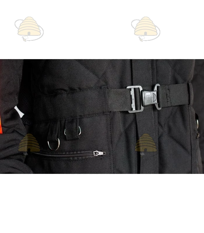 Kompletter und sehr professioneller Anzug / Overall in schwarzer Farbe, der hervorragenden Schutz vor der Asiatischen Hornisse bietet. Der Anzug ist mit praktischen Reißverschlusstaschen ausgestattet. Die Außenschicht des Anzugs besteht aus Cordura-Stoff, der für hervorragenden Schutz sorgt. Dieses Material ist extrem strapazierfähig, reißfest und wasserabweisend. Cordura wird häufig zur Herstellung von militärischer Ausrüstung verwendet.