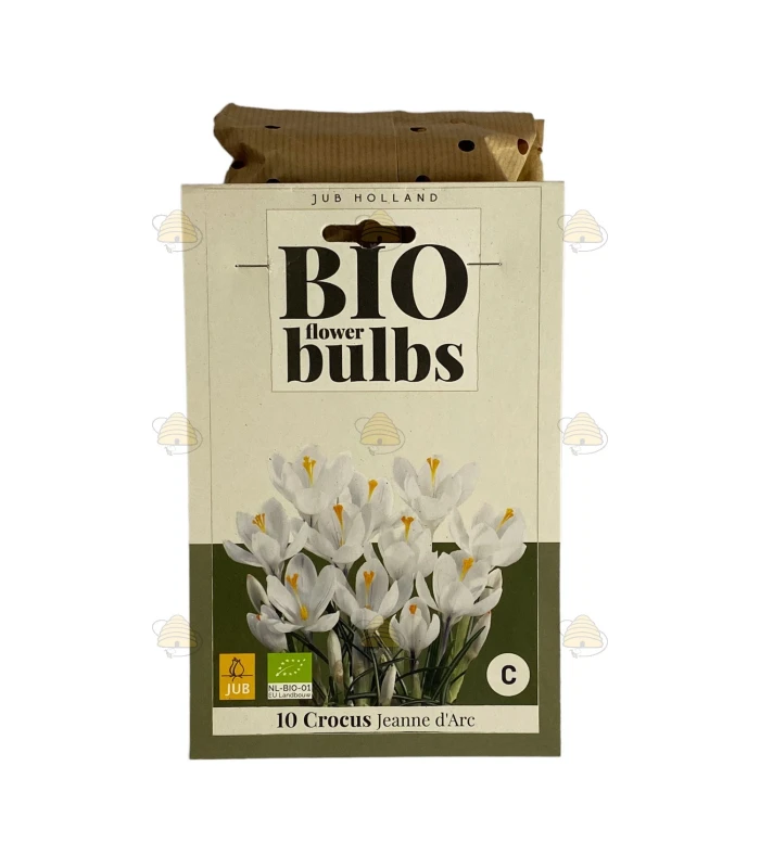 Schöner weißer Krokus mit einem orangefarbenen Stempel. Verpackt pro 10 Stück. Am Besten pflanzen Sie diese Bio-Blumenzwiebeln in die Sonne / den Halbschatten. Die Blumenzwiebeln sind biologisch und haben ein Skal-Gütesiegel. Diese Krokusse sind Trachtpflanzen und tragen im Frühjahr zu einem vielfältigen Trachtangebot für die Bienen bei.