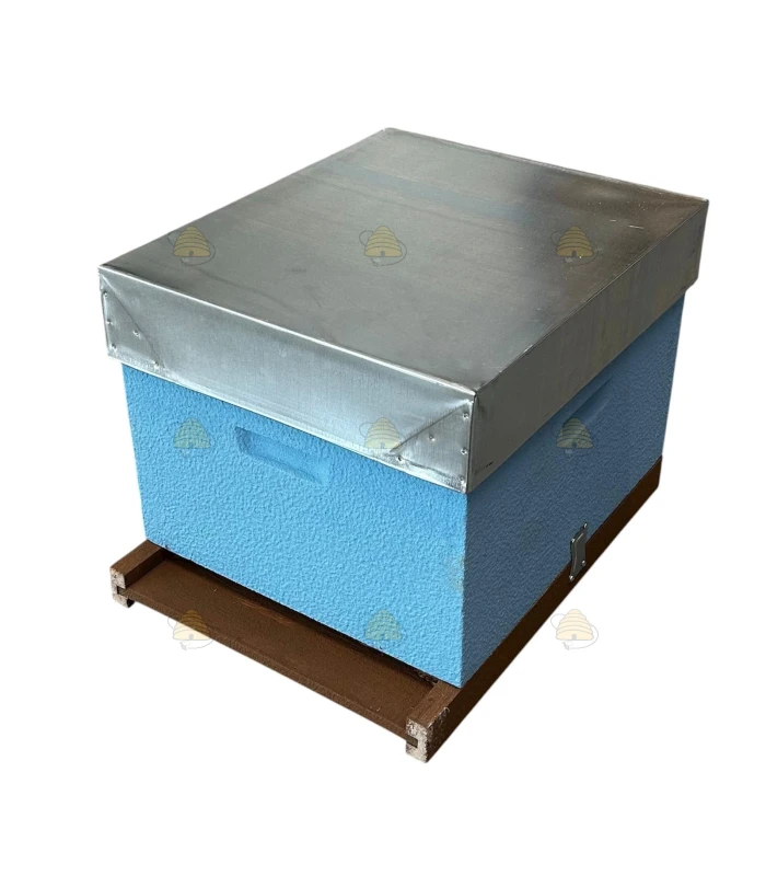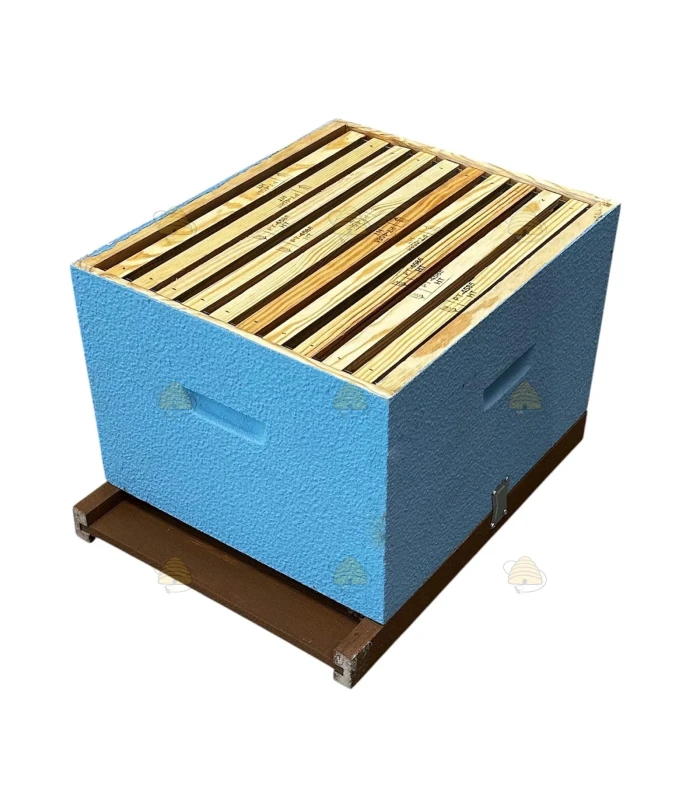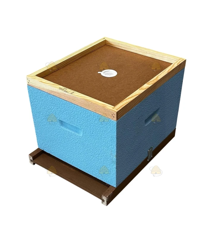 Fertige Dadant Blatt Holzbeute aus Kiefer, komplett geliefert und bereits in himmelblau lackiert.