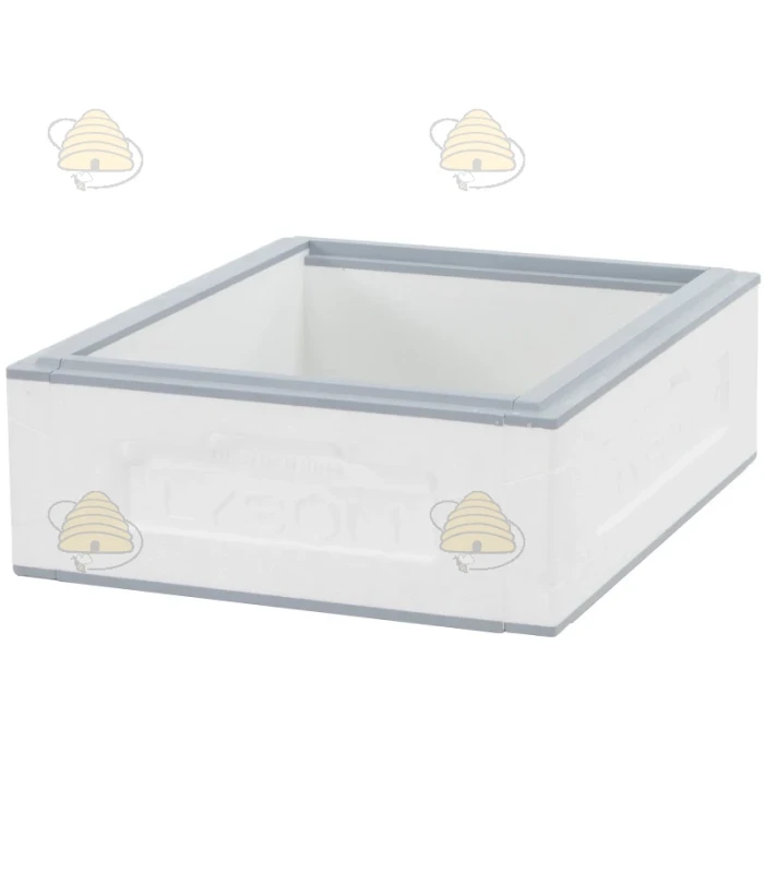 Dadant Blatt Honigraum (145 mm) für die Dadant Blatt Multi-Frame-Beute. Diese Honigzarge ist weiß unlackiert und aus hochwertigem EPS / Polystyrol mit hoher Dichte gefertigt. Eine sehr robuste, aber leichte Honigzarge, die sehr langlebig ist.