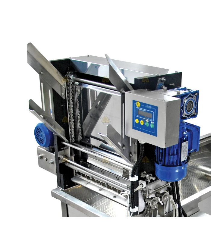 Vollautomatische Entdecklungsmaschine, individuell auf ein bestimmtes Rähmchenmaß ausgelegt. Die Maßanfertigung ist erforderlich, da das Gerät jeweils nur für eine Rähmchenart geeignet ist.