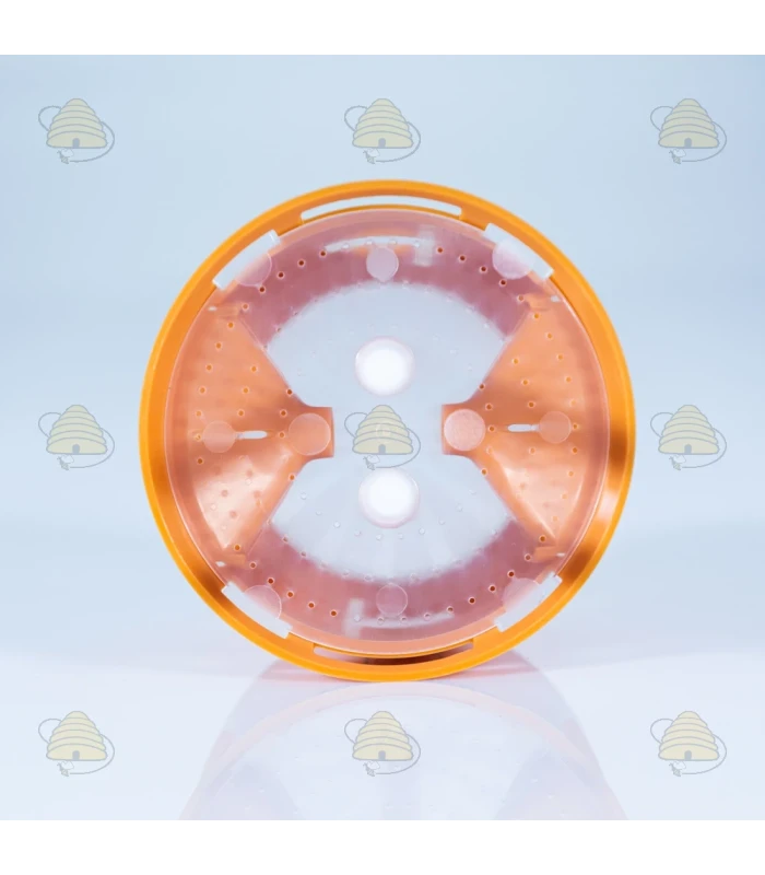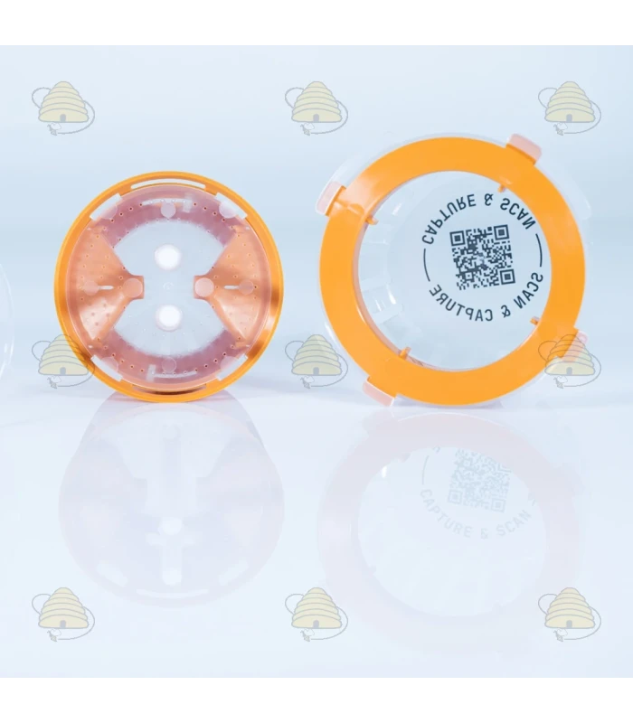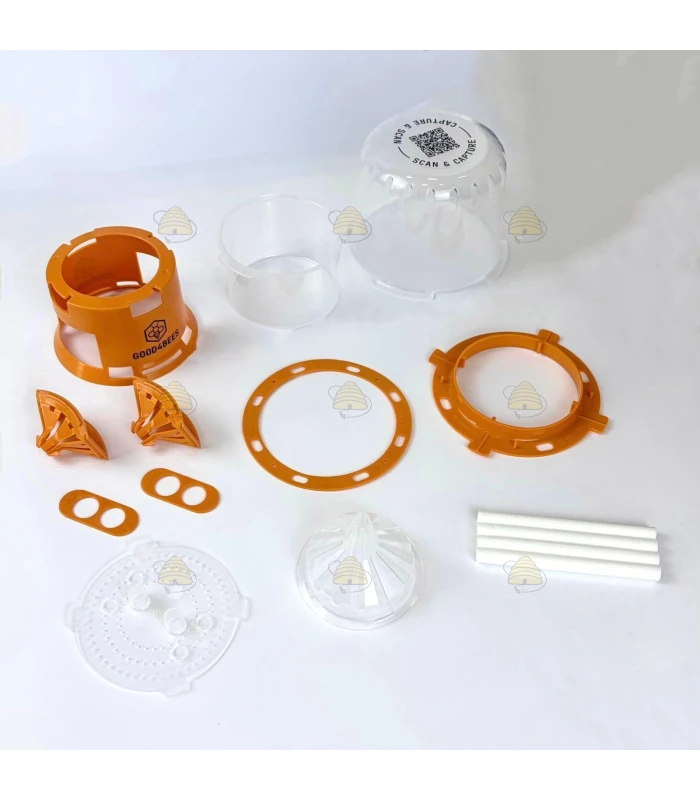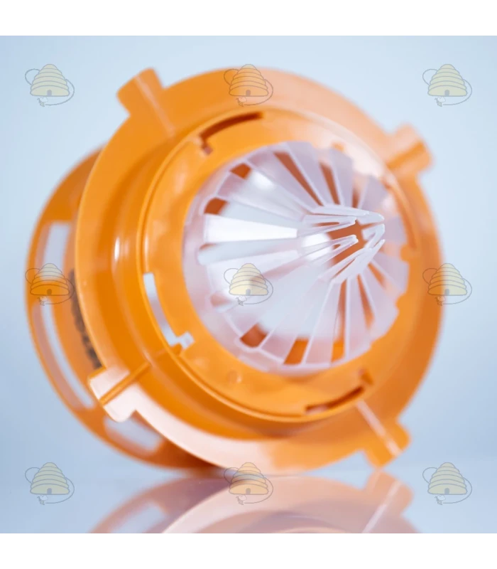 Die Öffnungen im transparenten Oberteil sind so dimensioniert, dass die Asiatische Hornisse nicht entweichen kann, während kleinere Insekten die Möglichkeit haben, die Falle wieder zu verlassen.