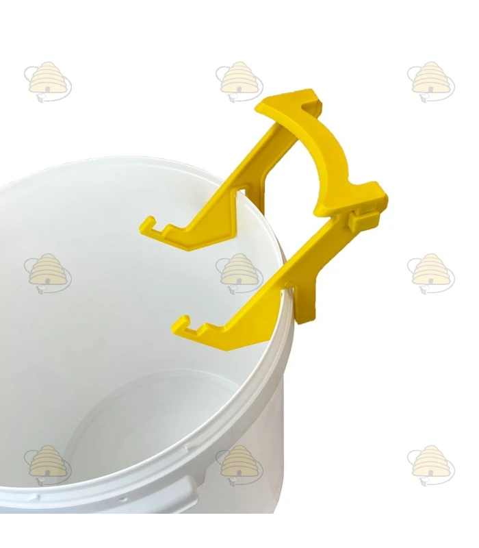Der Kunststoff-Eimerhalter ist ideal, um Eimer stabil zu platzieren, zum Beispiel beim Umfüllen von Honig in das Abfüllgefäß.