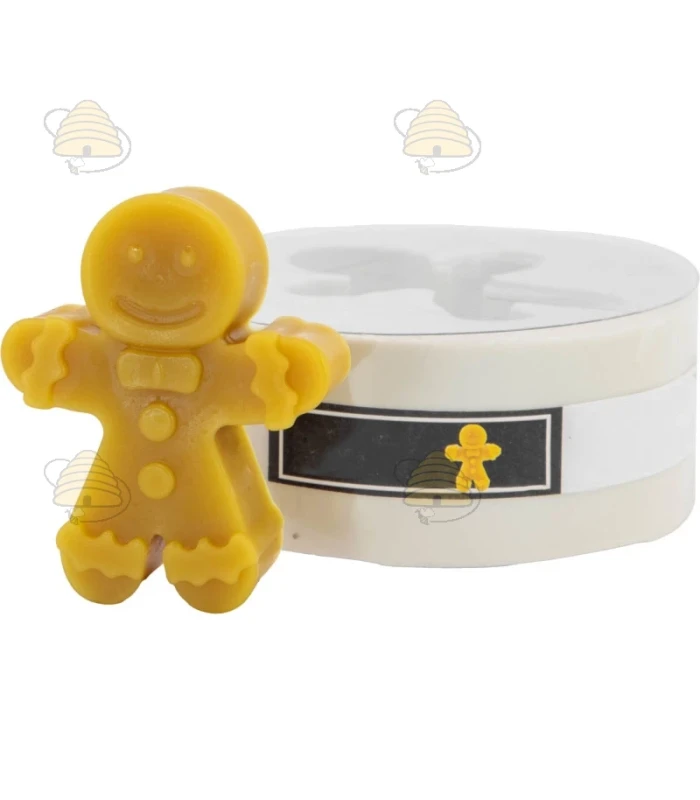 Gießform für Lebkuchen-Männchen. Mit dieser Gießform können Sie ein Lebkuchenmann herstellen. Die Form ist 6,5 cm lang und 5,5 cm breit. In eine Form passen ca. 34 g Bienenwachs. Alle Gießformen bestehen aus hochwertigem Silikon und sind mindestens 1000 mal wiederverwendbar.