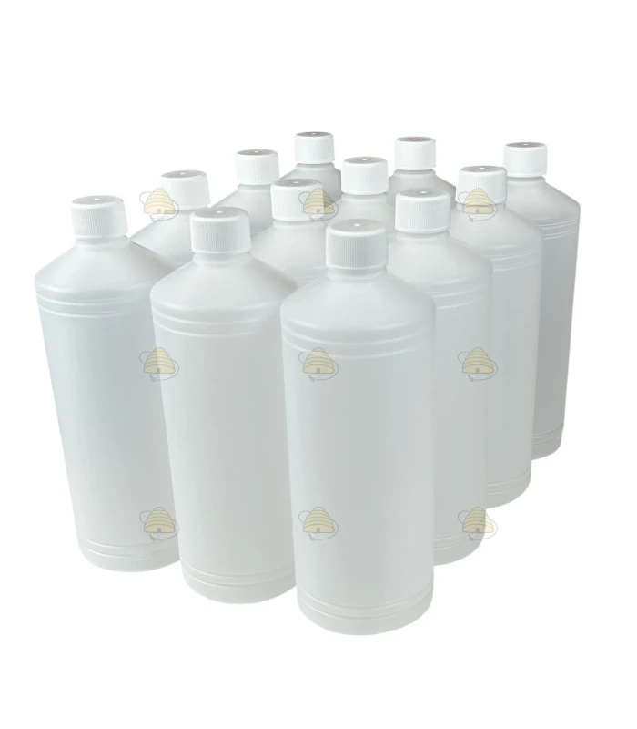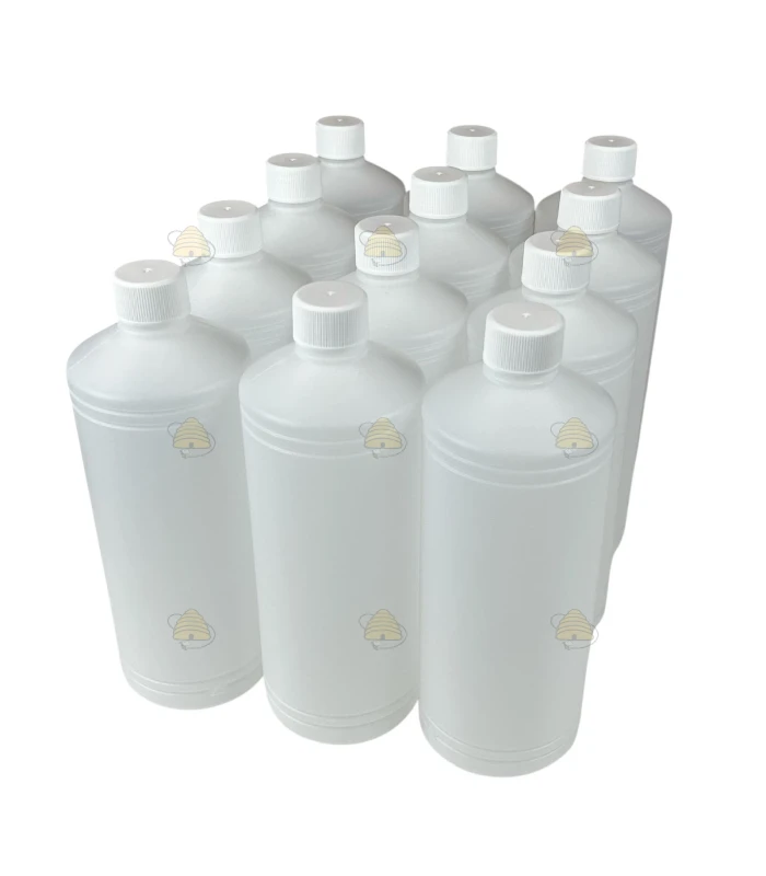 Diese lebensmittelechte Kunststoffflasche hat ein Fassungsvermögen von 1 Liter und wird im 12er-Pack verkauft. Die Flaschen werden mit gut schließendem Schraubverschluss geliefert und sind nicht komplett transparent. Ideal zum Abfüllen von verschiedenen Getränken und Flüssigkeiten.