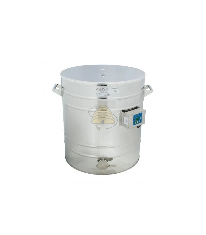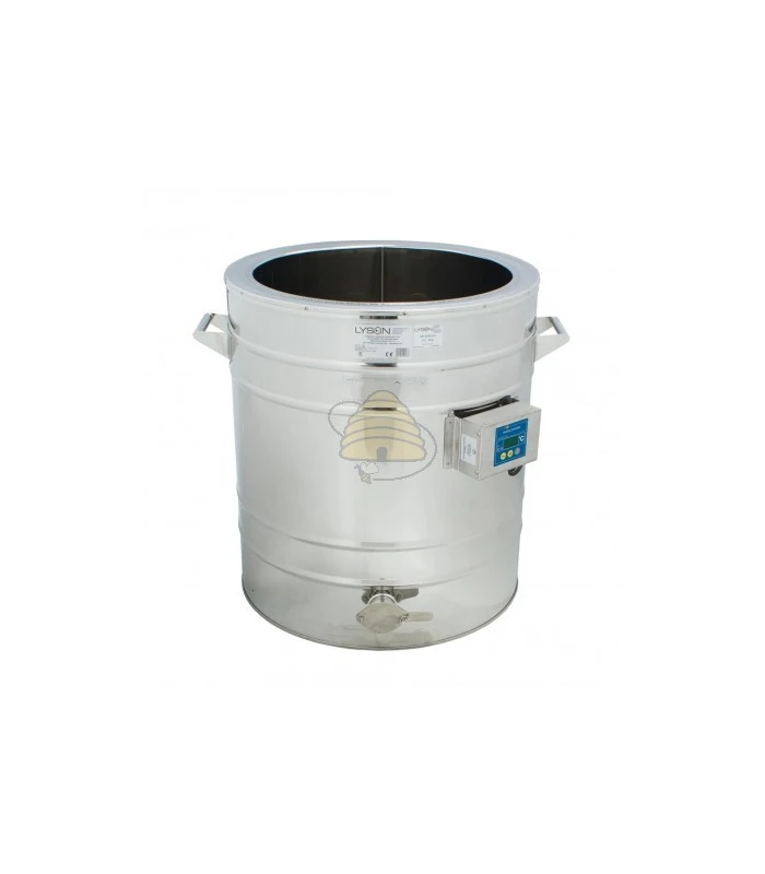 Der Abfüllbehälter / Heizbehälter besteht aus hochwertigem Edelstahl (RVS / INOX) und ist lebensmittelecht. Mit einem Durchmesser von 600 mm und seinem 100 L Fassungsvermögen eignet er sich sowohl für Hobbyimker*innen als auch für mittelgroße Imkereien.