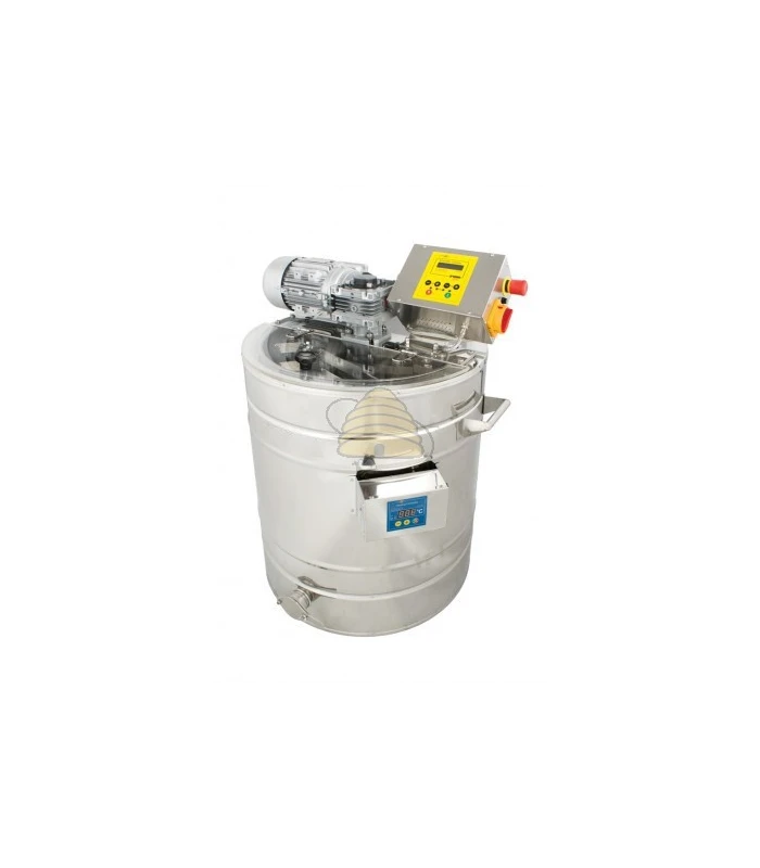Rühr- und Heizgerät mit einem Fassungsvermögen von 100 Litern zur Verarbeitung von Honig und zur Herstellung von Cremehonig. Durch die kontrollierte Erwärmung bei niedriger Temperatur können sich Zuckerkristalle lösen.