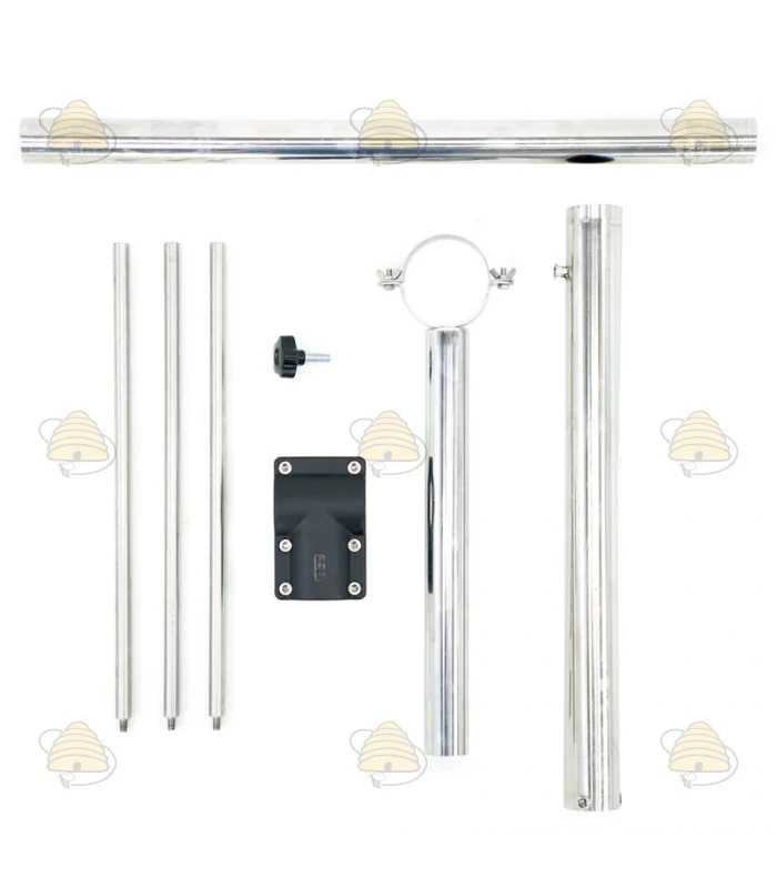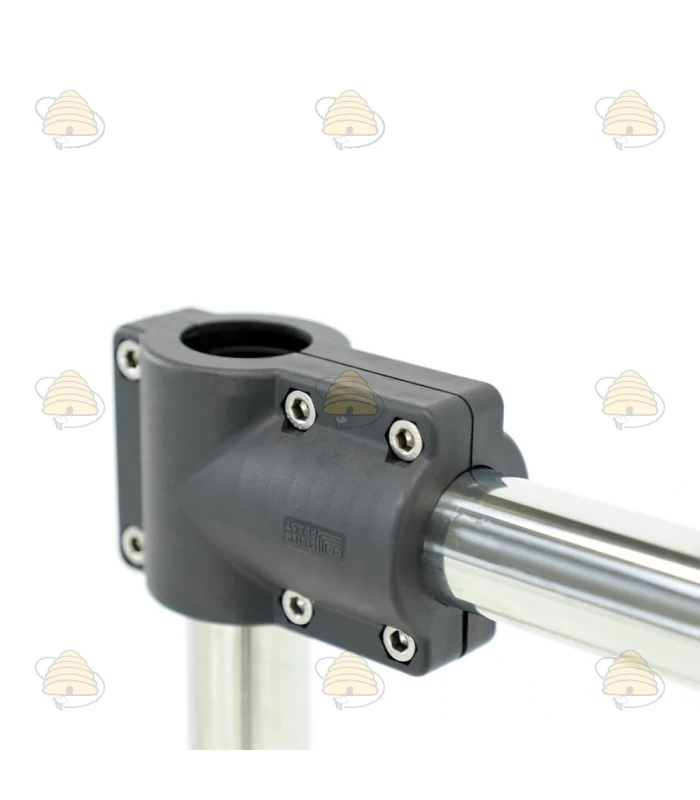 Halter für eine Rührspirale von 250 bis 480 mm. Mit diesem Halter können Sie Ihre Rührspirale einfach aufrecht in Ihrer Fass / Ihren Abfüllbehälter hängen. Der Halter besteht aus lebensmittelechtem Edelstahl, die Verbindungsteile aus lebensmittelechtem Technopolymer.