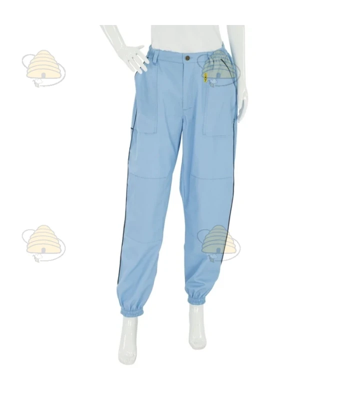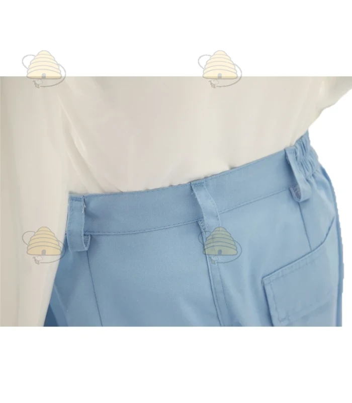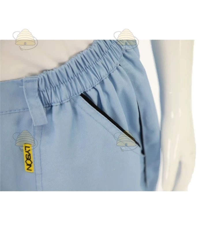 Hellblaue Imkerhose der Marke Lyson. Ideal kombinierbar mit der hellblauen Imkerjacke. Die Hose besteht aus strapazierfähigem Material, das zuverlässigen Schutz vor Bienenstichen bietet und gleichzeitig atmungsaktiv ist. Erhältlich in verschiedenen Größen.