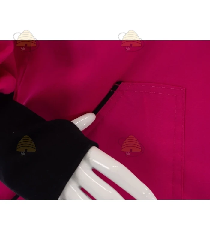 Farbenfrohe Imkerjacke der Marke Lyson. Das Jacke ist pink und verfügt über eine runden Hut, sowie Ärmelabschlüsse mit Bündchen für optimalen Schutz. Hergestellt aus atmungsaktivem Material, bietet diese langlebige Imkerjacke hohen Tragekomfort und schützt zuverlässig bei der Arbeit am Bienenstock.