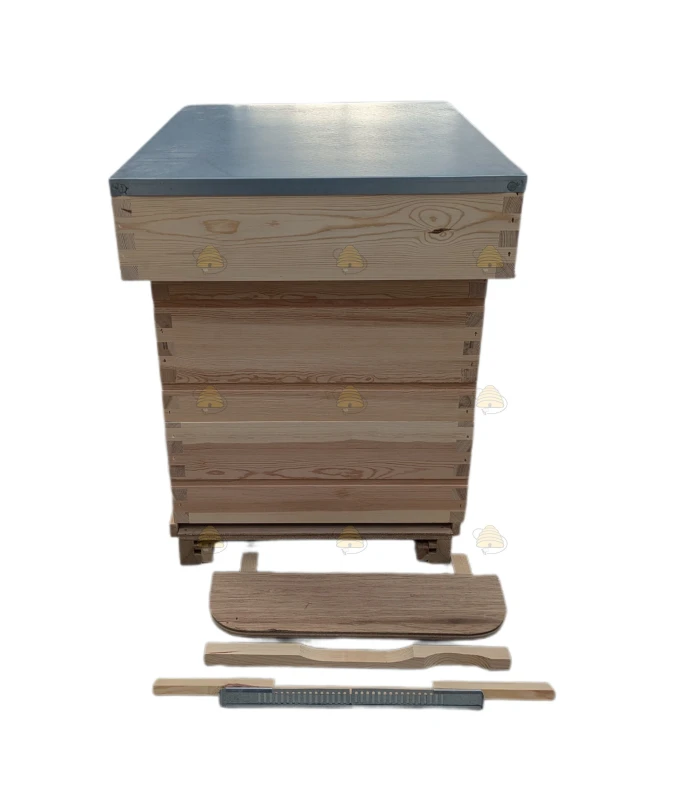 Langstroth Doppelwandbeute aus Kiefernholz, ausgestattet mit allen grundlegenden Komponenten für den Einstieg in die Imkerei. Die Beute verfügt über eine doppelwandige Konstruktion.