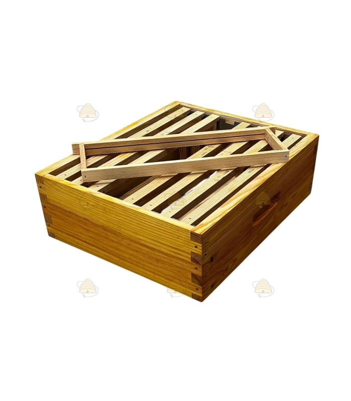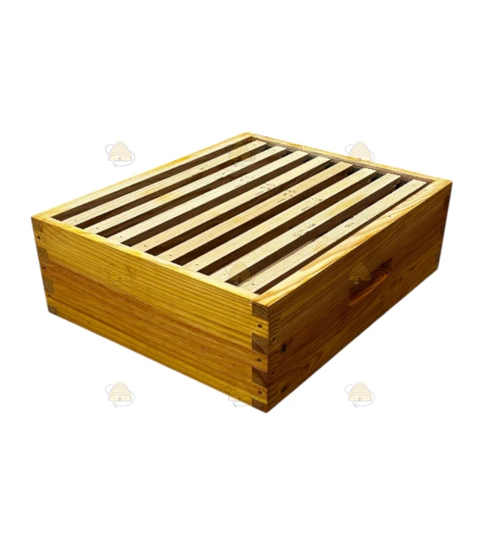 Die Honigzarge der Langstroth US Beute ist außerdem mit Abstandsleisten ausgestattet, die dafür sorgen, dass die Rähmchen sauber und sicher an ihrem Platz bleiben.