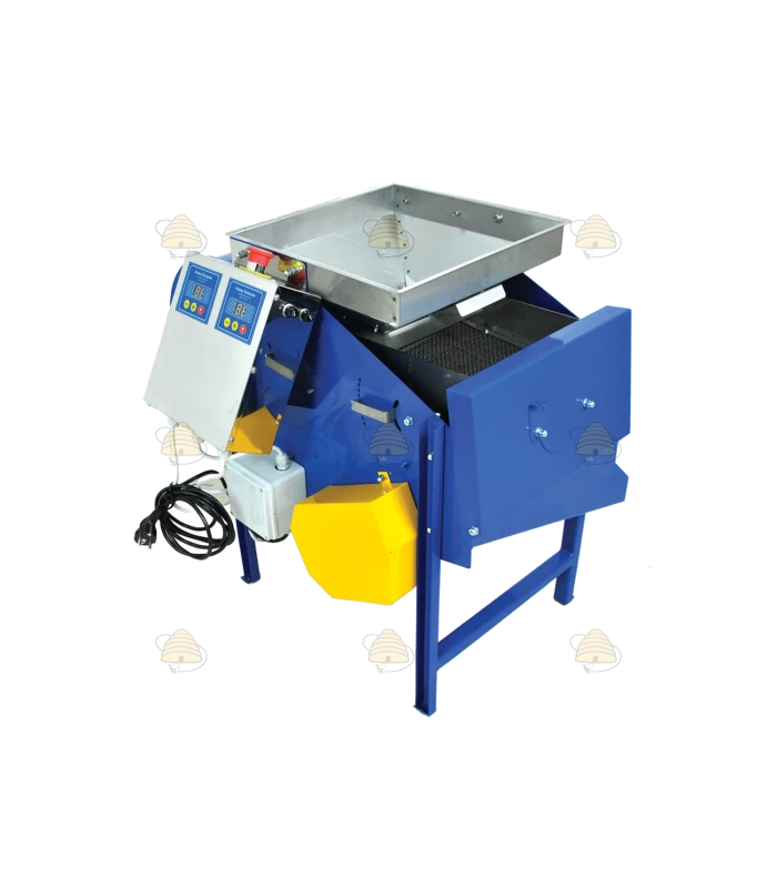 Automatische Pollenreinigungsmaschine zur Reinigung und Aufbereitung von Blütenpollen. Das Gerät arbeitet mit einem geregelten Luftstrom, durch den leichte Verunreinigungen wie Staub, Wachspartikel und Fremdstoffe aus den Pollen ausgeblasen werden.