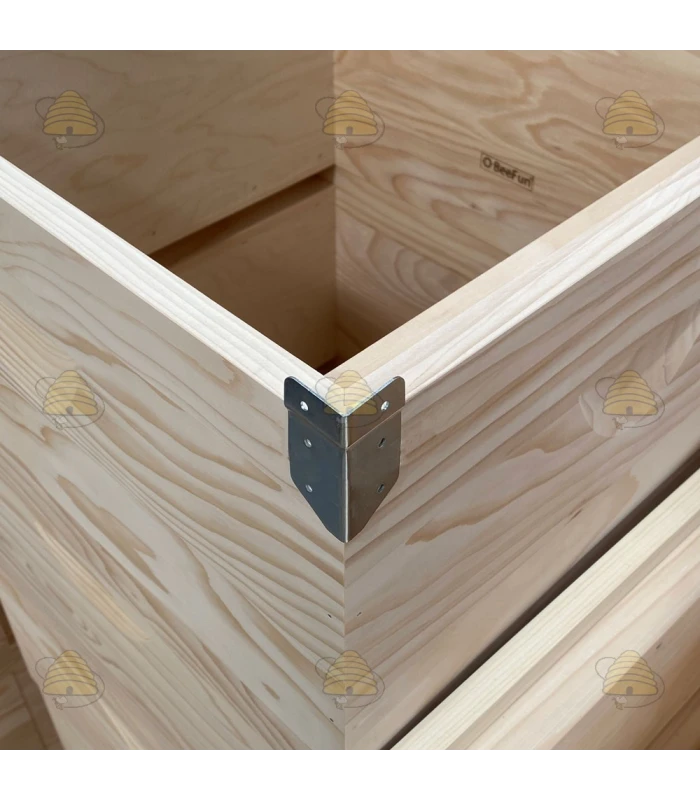Eckschutz (4 Stück) für die Beuten-Komponenten (Brutraum und Honigraum). Mit diesen verzinkten Eckschutzwinkeln bleiben die Ecken Ihrer Beute unbeschädigt. Die Eckstücke sind einfach zu montieren und haben eine universelle Größe, passend für die meisten Beuten.